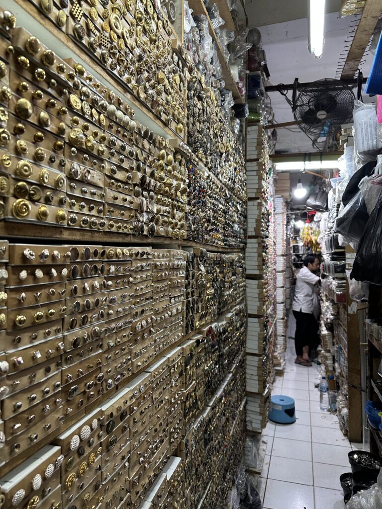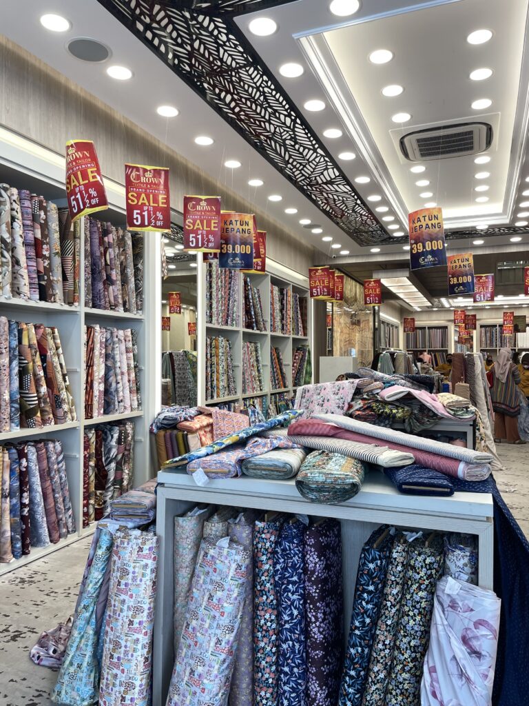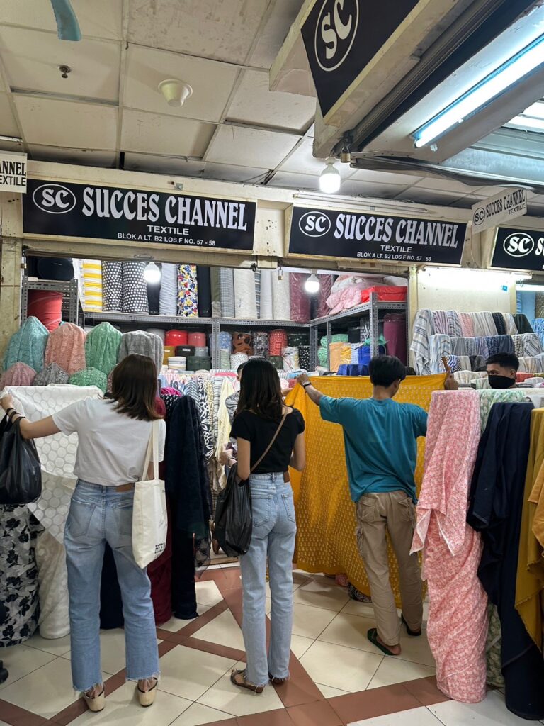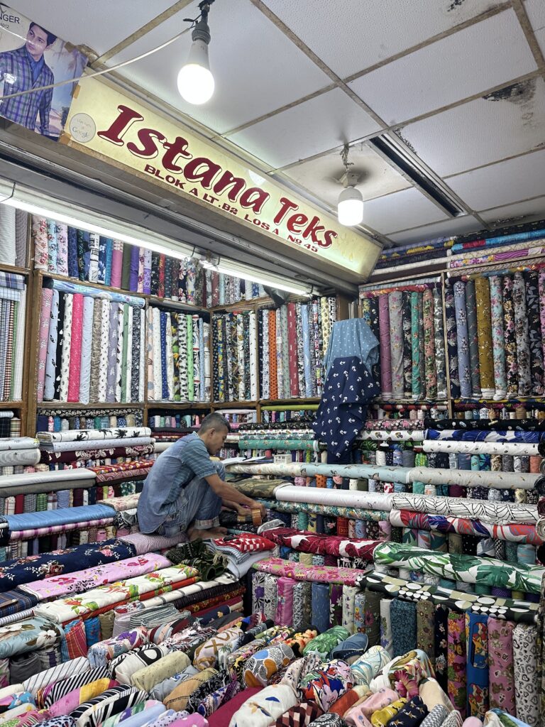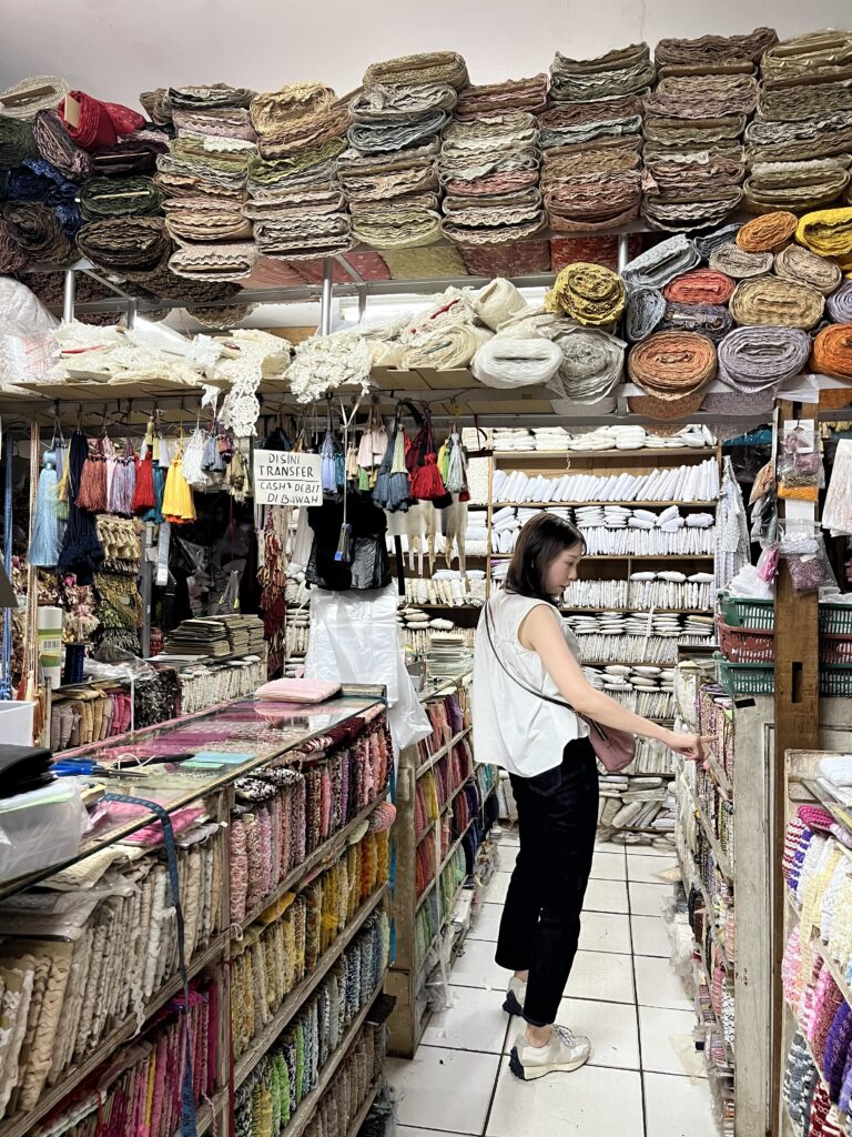 少し治安が悪いので1人で行くなどはおすすめできないのですが、Tanah Abangという場所にも大量の生地屋さんがあります。