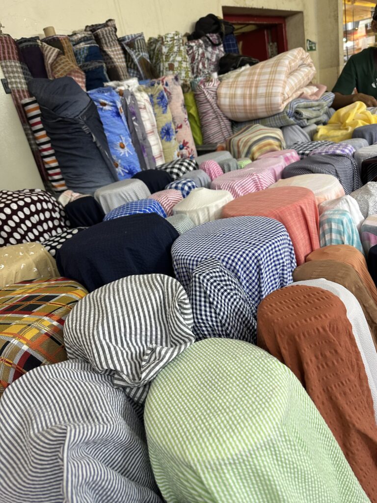 ここは生地屋さんがたくさんあり、自分の作りたい洋服に合う生地を見つけることが可能です。